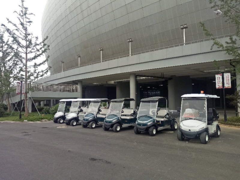 2018年7月在湖州奧體中心交付10臺綠友研發(fā)生產的電動觀光車,其中有4臺兩座電動巡邏車、1臺電動噴霧車、2臺電動工作車、2臺八座觀光車、1臺電動救護車。