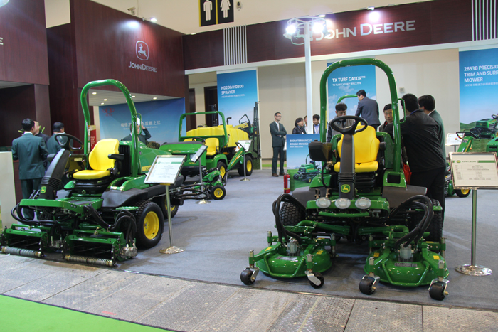 綠友展出了約翰迪爾系列剪草機(jī)、球場(chǎng)工作車等設(shè)備,亨特灌溉設(shè)備,GREENMAN四座系列、兩座系列球車,GEENMAN泵站以及打藥機(jī)、壓輥機(jī)等自產(chǎn)設(shè)備。