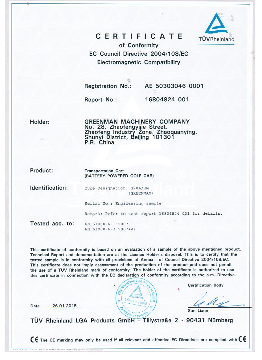 綠友集團(tuán)自主研發(fā)的GREENMAN兩座電瓶車golf car通過了CE認(rèn)證。