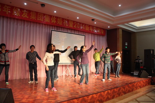 聯(lián)歡會在郭蕊、卓麗等8人獨具風情的彝族舞蹈《火把節(jié)》中開始。接著北京綠友園林、技術中心、審計部、OHEV、北京工廠、廣告部、總裁辦等部門的同事獻上了自編自導的精彩節(jié)目。節(jié)目形式多樣,有歌曲、舞蹈、小品、詩朗誦、微電影等,歌曲精彩翻唱、舞蹈熱情奔放、小品搞怪十足、情景劇浪漫幽默、詩朗誦優(yōu)美抒情……集中了大家的才藝、智慧和創(chuàng)造力,反映出2013年綠友的大事件、新產品和員工的工作狀況以及生活感悟。來自荷蘭的灌溉學專家Ronald Kruizenga先生演唱了他們國家的歌曲《De glimlach van een hind(The smile of a child)》,退休的王秀媛、閆松梅兩位老大姐也帶來了深情厚誼的《我不想說再見》。