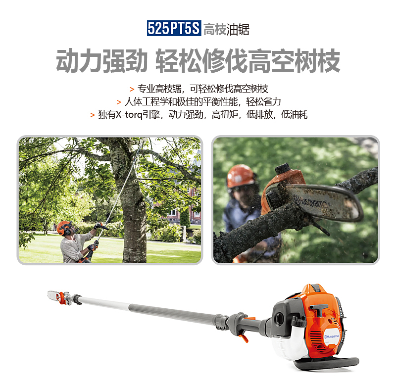為專(zhuān)業(yè)用戶而設(shè)計(jì),富世華525PT5S配備延長(zhǎng)桿,可以清除高空樹(shù)枝,人體工程學(xué)和平衡性助您以輕松的方式完成任務(wù)。操作簡(jiǎn)便,X-Torq?引擎保證強(qiáng)勁動(dòng)力,高扭矩,低排放和低油耗。