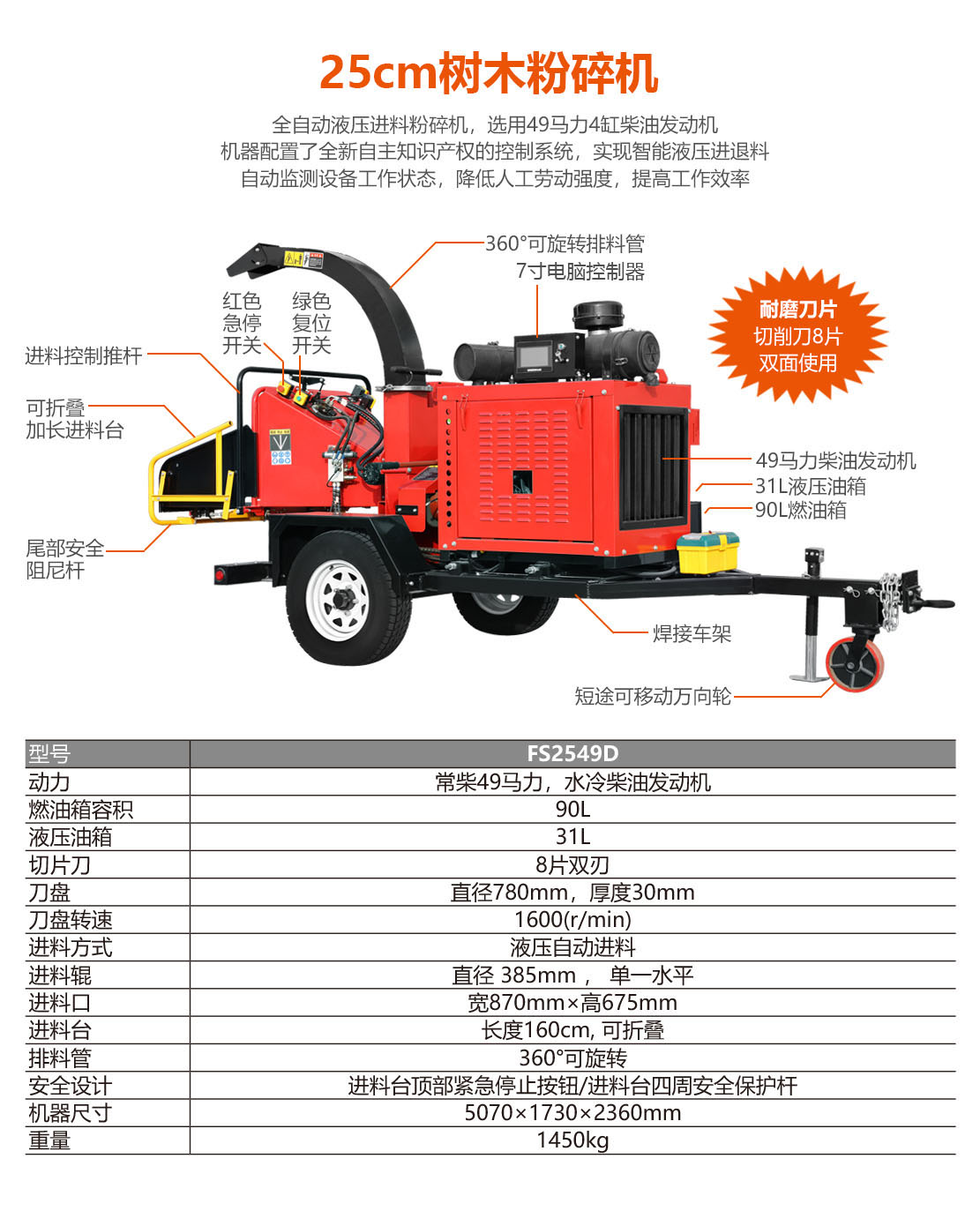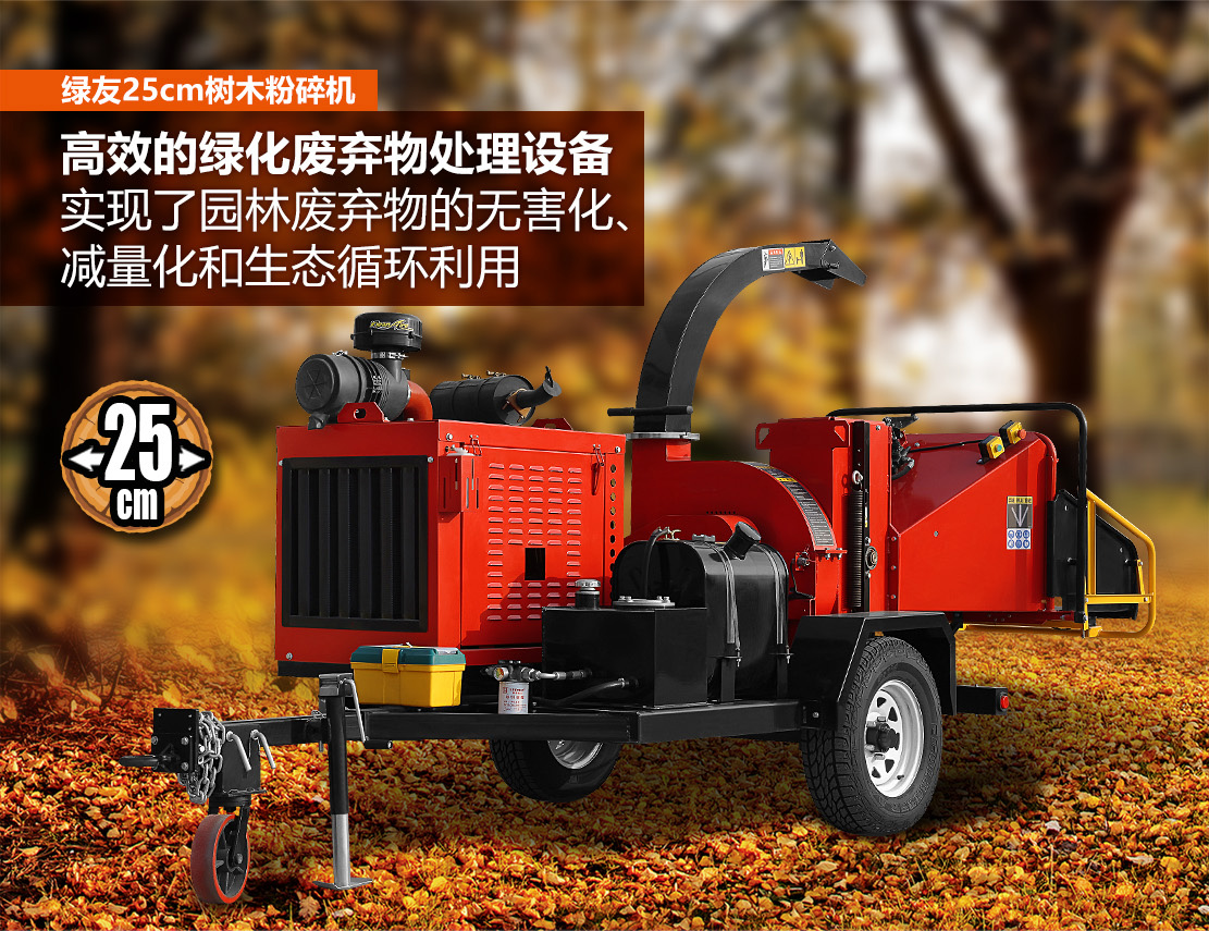 25cm全自動(dòng)液壓進(jìn)料粉碎機(jī),選用49馬力環(huán)保柴油發(fā)動(dòng)機(jī)。